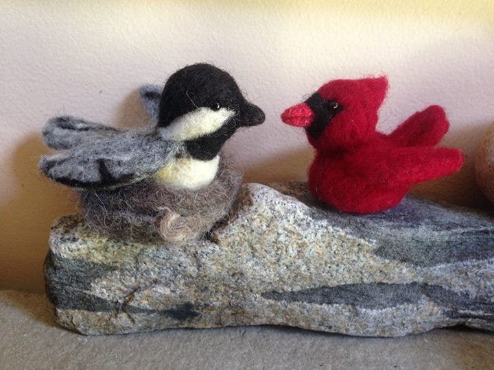 For $10 Bring Your Own Needle Felting project ( BYON) and receive guidance and support or purchase a kit to work on for an additional fee. Each month features a different kit – this month is cardinals and chickadees - but you may choose from a variety of projects.