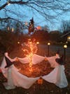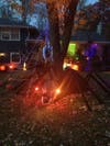 This year, the speakeasy underwent a renovation of sorts and more witches paid the Halloween House a visit. Ghosts fly back and forth across the yard and skeletons roast marshmallows by a fire pit.