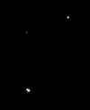Aiming binoculars or a small telescope at Mizar will reveal that Mizar itself is a binary star consisting of a pair of white stars. These orbit each other with a period of several thousand years, and are separated by a distance of about 600 times the distance from the Earth to the Sun. The brighter of the pair is labeled “Mizar A”, and its companion “Mizar B”. The third star seen in a small telescope when looking at Mizar and Alcor together has yet another story, which I’ll come back to at the end of this article.