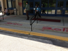 Scrawled letters in red and green spray paint are on the sidewalks and facade of Nonnewaug High School this morning. One broken window has since been fixed.