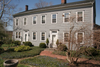 The oldest part of this home was built by Levi Coe, Sr., circa 1787, on twelve acres. In 1832, Levi Coe, Jr. inherited the home and enlarged the property to 300 acres, added the Greek Revival elements to the house and named it Cloverdale Farm. The notable Greek Revival details include recessed panels on the pilasters, double fascia board with stringcourse molding, and the trabeated (horizon beams or lintels), in the entry. The south parlor displays distinctive door surrounds with eared architraves (moldings surrounding doors), and splayed (oblique angled or beveled) frames. The newel post is original to the house. Also of historic significance are the maple trees lining the front of the house, which are said to have been planted by Civil War veterans. The glass greenhouse on the south elevation is a modern addition. An in-ground pool, bath house, tennis courts, livestock arena, two barns and a 1920’s office building are located on the property.