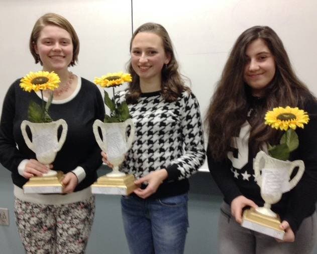 Three winners were announced for the Pomperaug High School’s Poetry Out Loud Competition: 1st place- Kathleen S., 2nd place- Natalie D., 3rd place- Shefkije D.