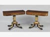 This auction has at its core a sizable group of American formal and country furniture, decorations and folk art consigned from several estates and private collections. A private collection in Fairfield County yielded several fine pieces, including a pair of gilt stenciled rosewood classical card tables, thought to be from the workshop of Duncan Phyfe or a contemporary New York City craftsman. The tables have cross-banded "D" shaped folding tops on substantial gilt acanthus carved standards, quadruped carved paw footed gilt highlighted bases with ebonized paw feet, and measure 29" high, 36" wide, 18" deep closed, 36" deep open. The same collection yielded a Philadelphia Sheraton mahogany game table with lobed top on tapering reeded legs; a very fine Chippendale cherrywood four drawer chest with serpentine shaped top, straight front, four graduated drawers, and ogee bracket feet, probably Rhode Island or Connecticut; a Delaware Valley Chippendale two-drawer blanket chest with spurred bracket base; and a Rhode Island queen Anne mahogany porringer top tea table with densely figured mahogany top on turned tapering legs ending in pad feet.