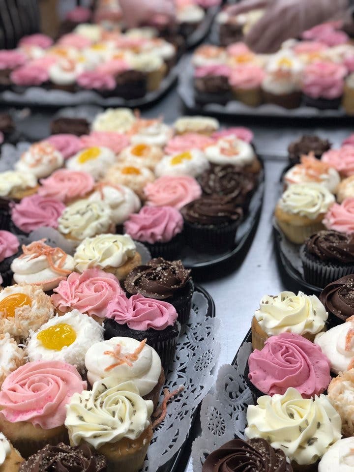 All flavors are available as oversized cupcakes with a minimum order of 3 per flavor. Many flavors are available as minis with a minimum order of 12 per flavor requested.