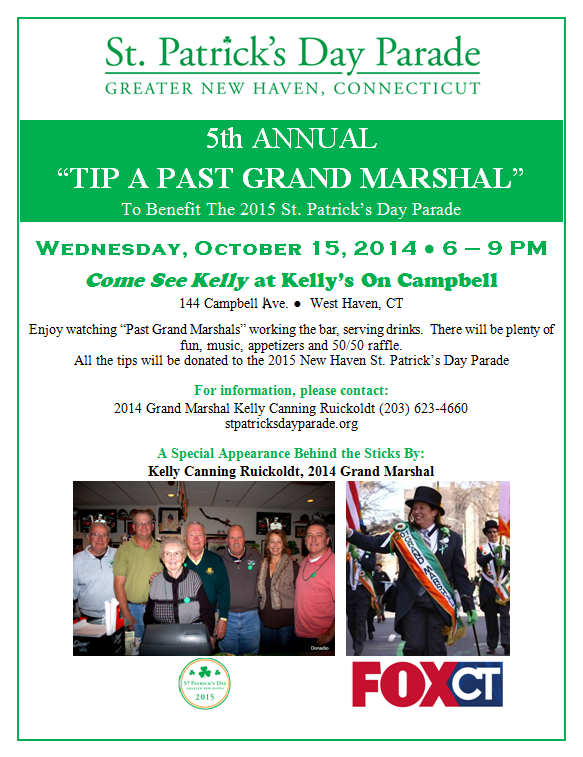 Tip a Past Grand Marshal at Kelly's on Campbell – Proceeds to New Haven St. Patrick's Day Parade Location: Kelly's on Campbell