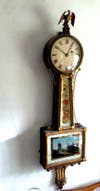 My long-time friend and fellow auctioneer Jon Lee from Albany signed on to help with the sale, and when he, his wife Nancy and some of our staff started work on the sunporch of the house on Monday, August 1st, the real adventure we had undertaken began to unfold. By the end of the afternoon, we had uncovered almost fifty additional American clocks which were not visible in that room which was being used for storage and was piled high with boxes. We discovered nine American tall clocks - including a rare Jacob Willard - twenty four banjo clocks – including four L. Curtis examples – and fifteen pillar and scroll and Empire mantle clocks by makers such as E. Terry, Silas Hoadley, Eli Terry Jr. and many others, mostly Connecticut makers. A five drawer New England tall chest in the room had five first-rate banjo clocks “filed away” inside, one in each drawer”.