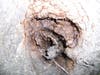 The entrance is small and the hive is deep, deep in the tree...There is no way of getting it out without substantial cutting of the trunk.