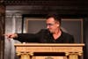 The well-known artist and activist was in fine form as he mixed humor, calls for social justice, and hard policy facts and figures in the 45-minute address at Healy Hall. He even pulled off a fine Bill Clinton impersonation, much to the delight of students and a handful of dignitaries in the audience.