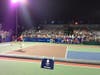 The atmosphere is delightfully non-Wimbledon, though Strawberries and Cream are available. The fans are encouraged to be boisterous, though not during points. There are cheerleaders, guys on stilts, and a host of other attractions fitting with the typical sports event motif that we've all come to appreciate (some of us more reluctantly than others).