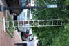 I took a 5-gallon Home Depot barrel and duct-taped it to the end of a rake (duct tape rocks). That gave me the reach I needed to take a 12-foot ladder and my modest frame to get to the bees. A good knock on the tree branch and we had about 5 lbs of bees.