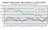 To give you an idea about how dramatically the market has changed, the accompanying charts show the same three indicators from January 2007 through the end of 2008. The number of active listings was as much a seven times the number of new contracts, and the number of new listings coming on the market was typically double the number of new contracts.