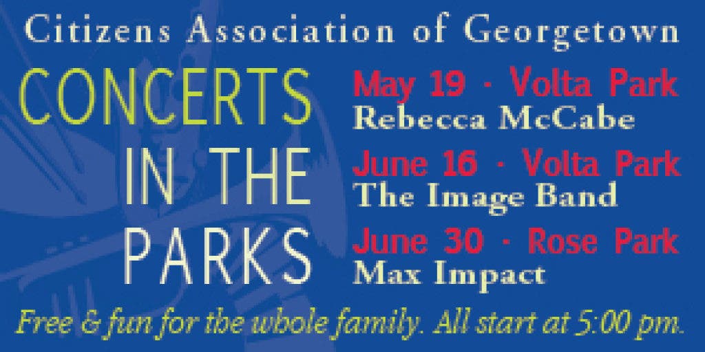 Other concert dates this summer are June 16 for a Father's Day Reggae Fest in Volta Park and a June 30 Independence Day Celebration and Patriotic Parade in Rose Park.