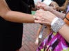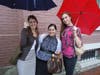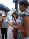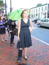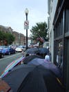Three friends stood together sharing umbrellas and waiting for their chance at a few bargains. Katherine Reuning of Clarendon said it was the first time any of them had been to the sale. Maria Kent of Potomac, MD added that they learned about the event because of a friend on the board. Gemma Sole of McLean said she had come right from work, "unhappily so," as she switched from walking-friendly flip-flops to bronze patent leather heals.