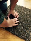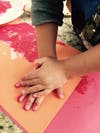 Once your child understands how to create the heart shape with his hands, he can do it on the cork board. I would do a print on construction paper first because too much paint can leave a smudgy print. Another solution is to paint your child’s hands instead.