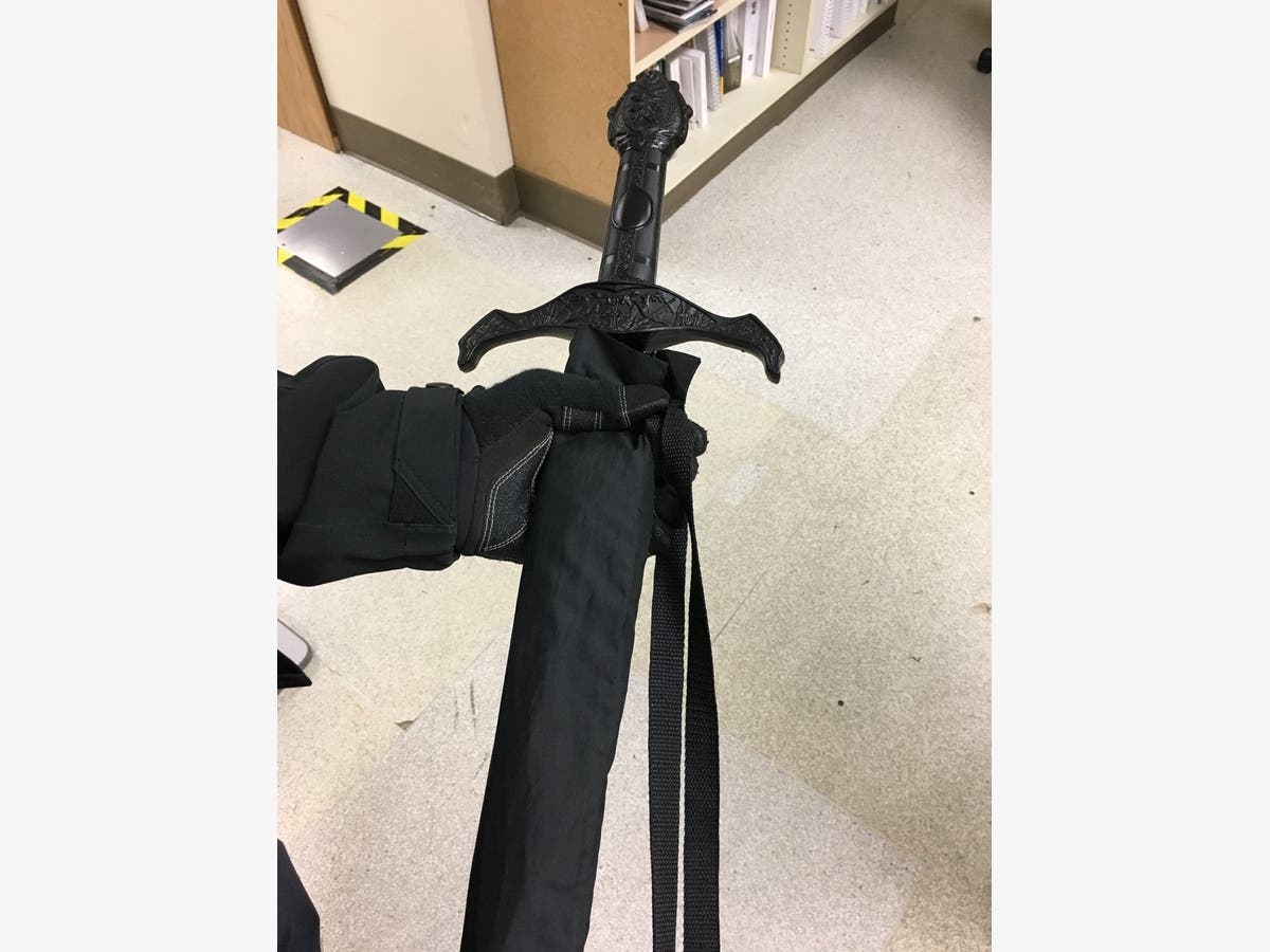 However, the umbrella was actually shaped like a medieval sword. The umbrella, available on Amazon, is advertised as looking like a "broad sword."
