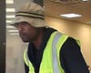 The suspect is described by the FBI as a black man wearing a lime-green fluorescent vest with an “H” on the back over a dark-colored long-sleeved jacket, light-colored blue jeans, a khaki-colored fisherman’s hat with a black and gold band and white gloves.