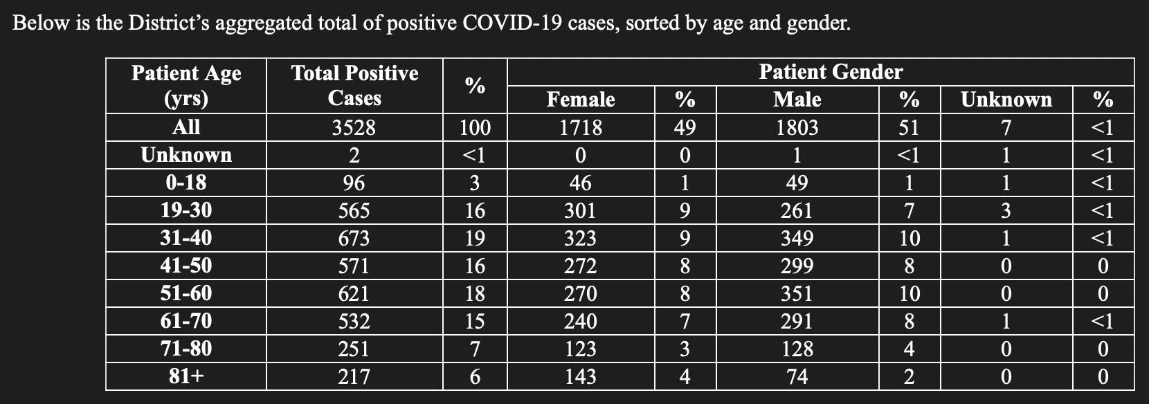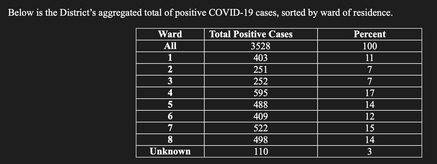 The District recently started reporting positive coronavirus cases and deaths by age, gender, race and ward.