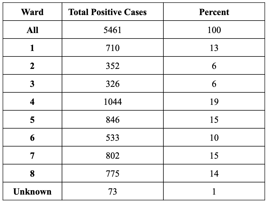 Total of Positive COVID-19 Cases By Ward