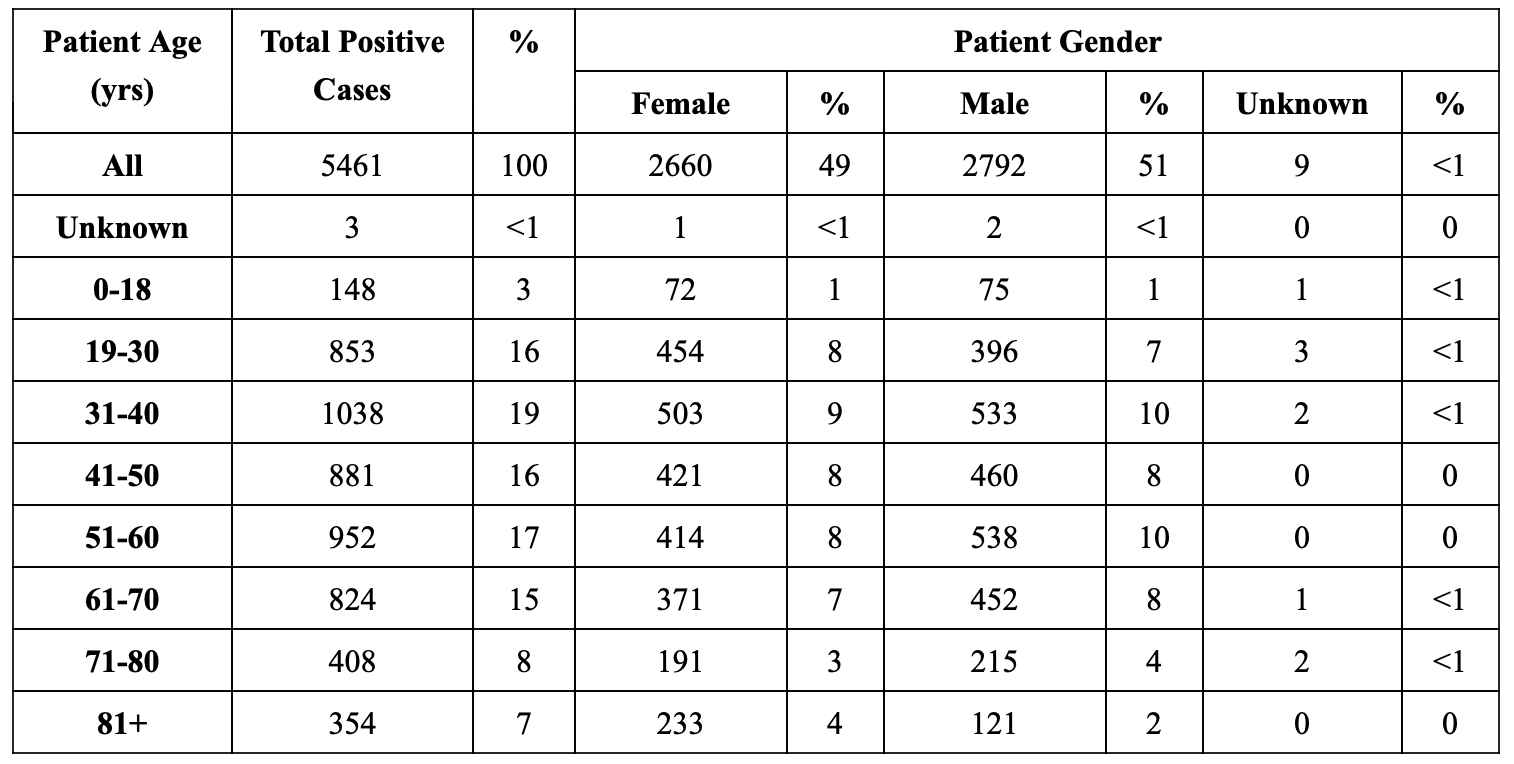 Positive COVID-19 Cases By Age And Gender