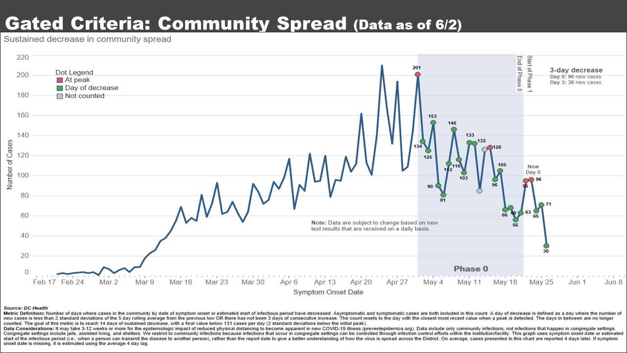 As of June 2, the District has reached three days of sustained decrease in community spread, which is detailed in this chart: