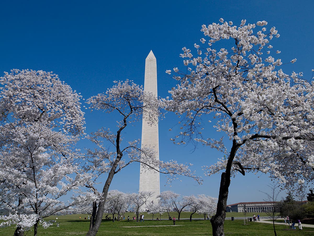 Patches of cherry blossoms can be found all around downtown D.C. There are a few bunches near the Washington Monument, so don't forget to stop there during your spring sightseeing.
