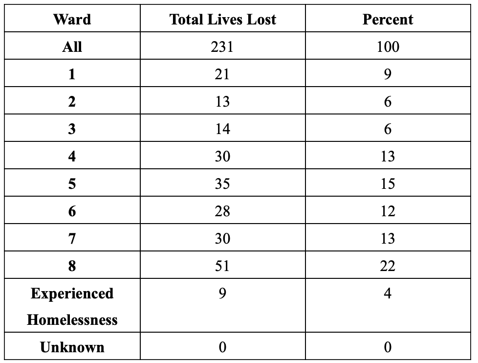 Aggregated Total of Positive COVID-19 Deaths By Ward: