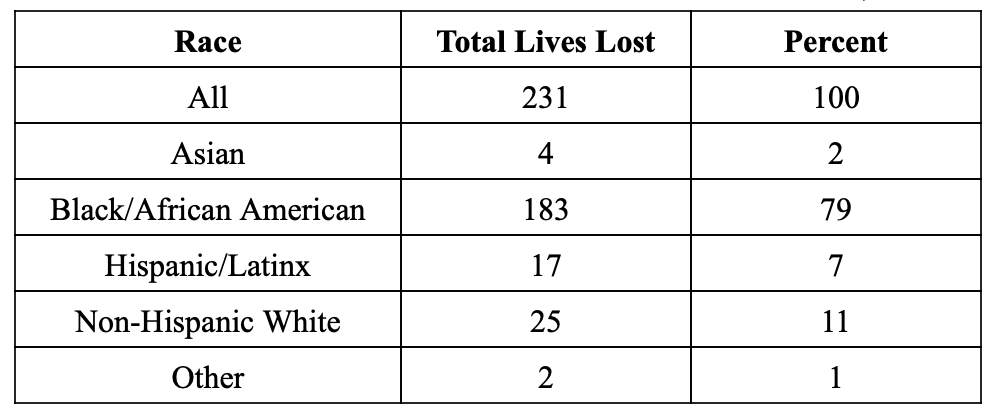 Aggregated Total of Positive COVID-19 Deaths By Race: