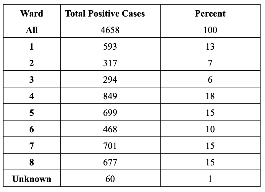 Aggregated Total of Positive COVID-19 Cases By Ward:
