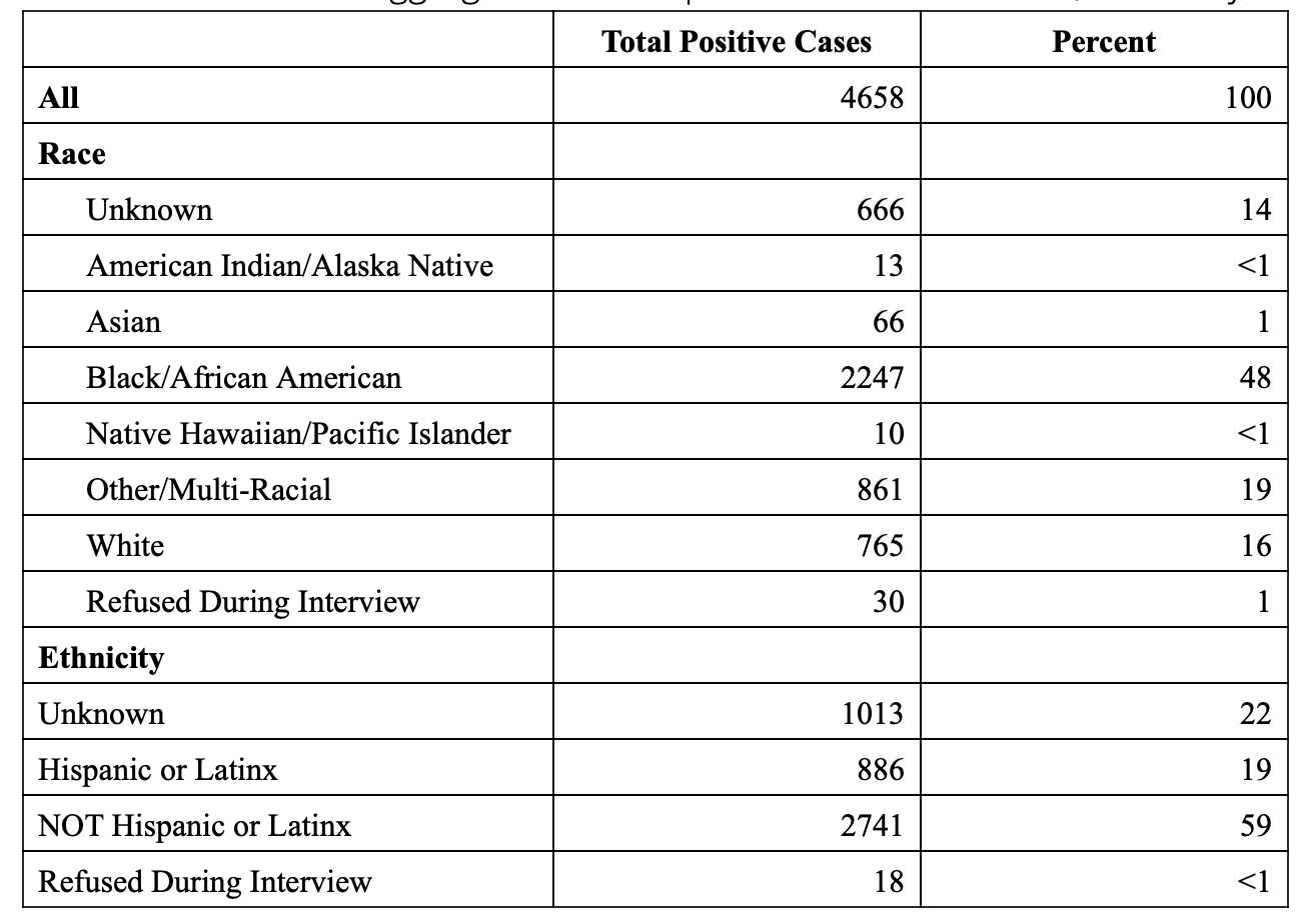 Aggregated Total of Positive COVID-19 Cases By Race: