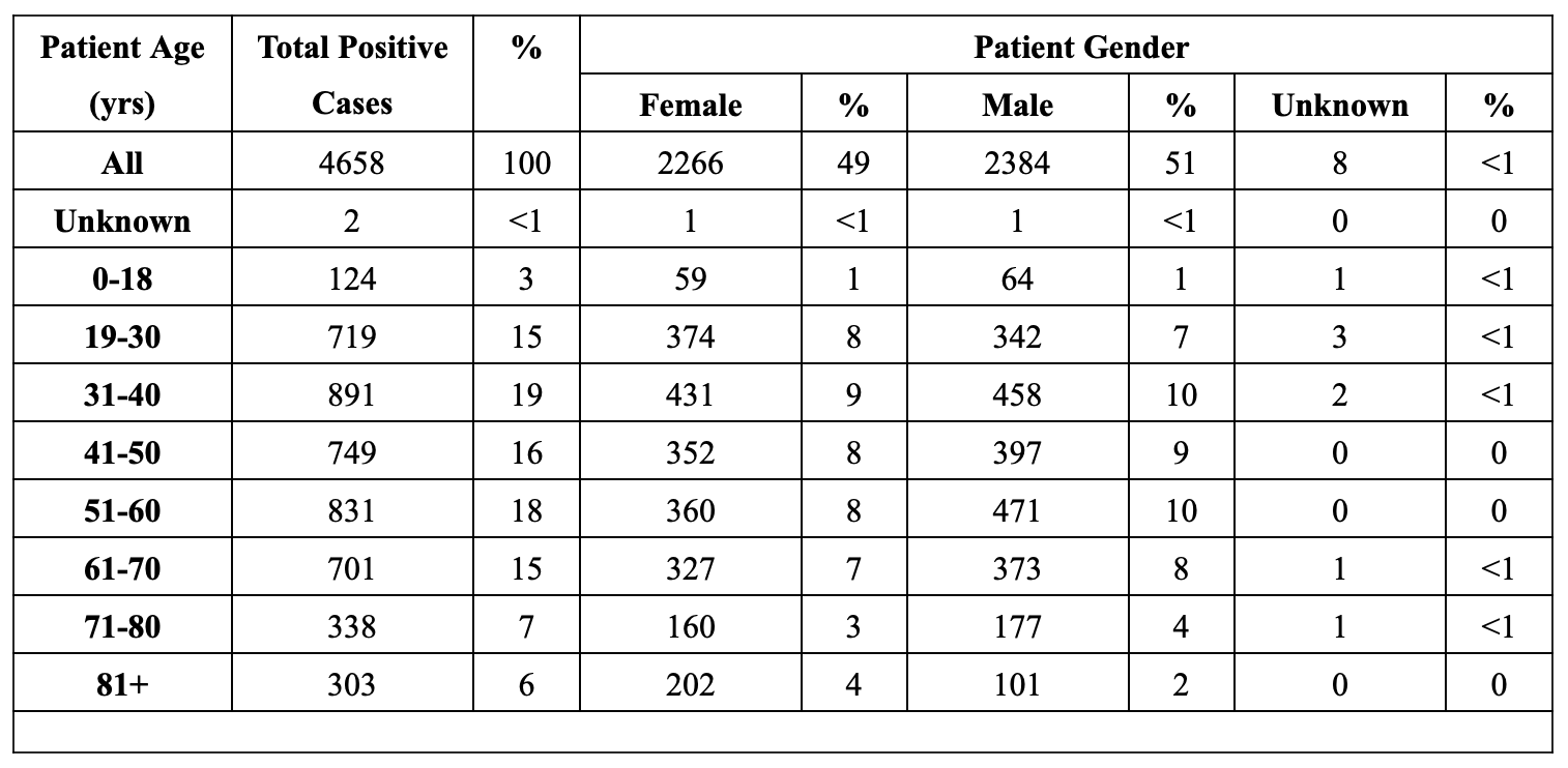 Aggregated Total of Positive COVID-19 Cases By Age And Gender: