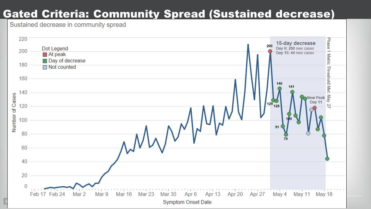 D.C. Health also reported a 15-day decrease in community spread of the coronavirus Thursday. On Wednesday, the District reached the 14-day mark, which is one of the key metrics for the District to continue moving forward with its reopening.