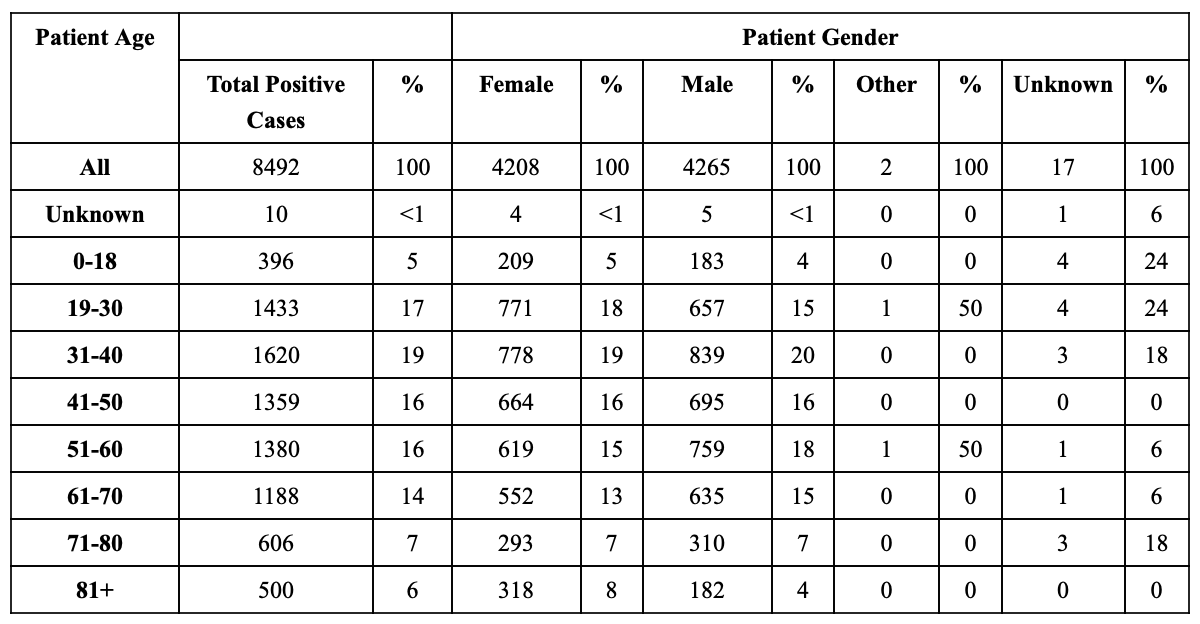 Positive COVID-19 Cases By Age And Gender