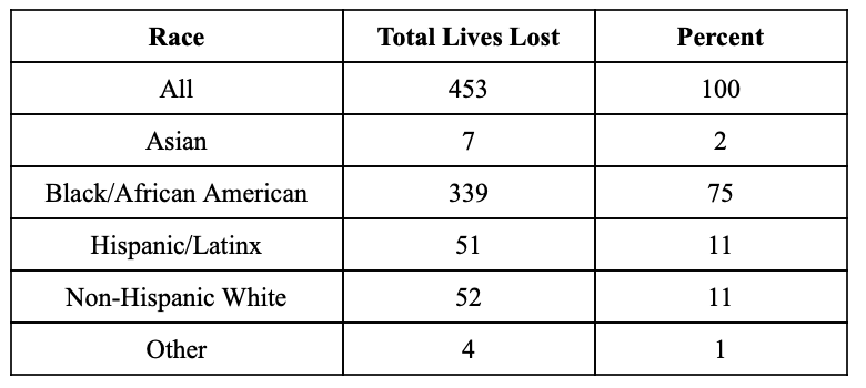Total of Positive COVID-19 Deaths By Race