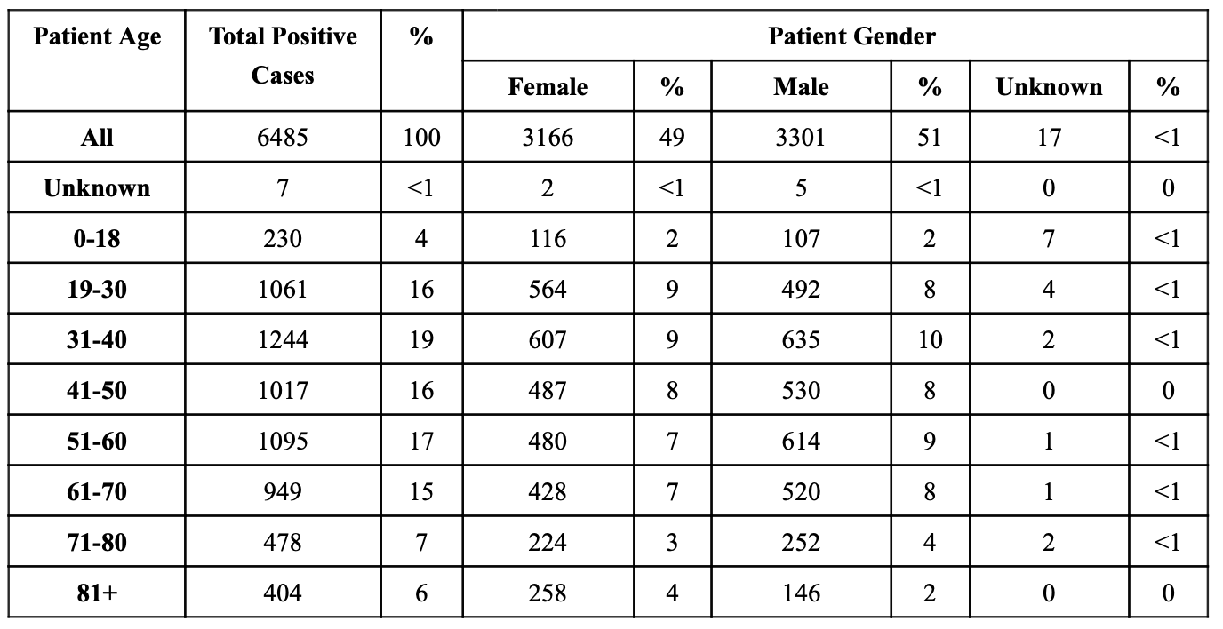 Positive COVID-19 Cases By Age And Gender