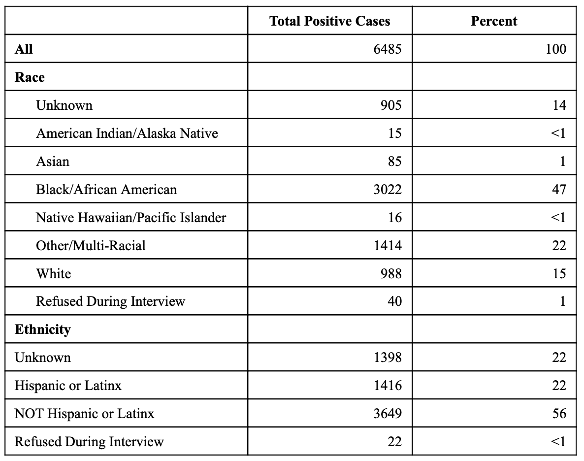 Total of Positive COVID-19 Cases By Race
