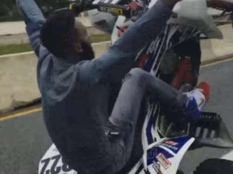The stunt video posted to Instagram last weekend shows a man, whom police say is Barbour, as he rides wheelies with an ATV, stands on one leg and drives without touching the handlebars – all while zooming down the road in District Heights.