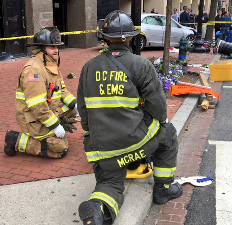 D.C. Fire and EMS tweeted just before 3 p.m. that there had been a two-vehicle collision near the intersection of 9th Street and New York Avenue NW. One of the vehicles apparently ran onto the sidewalk, striking and pinning multiple pedestrians.
