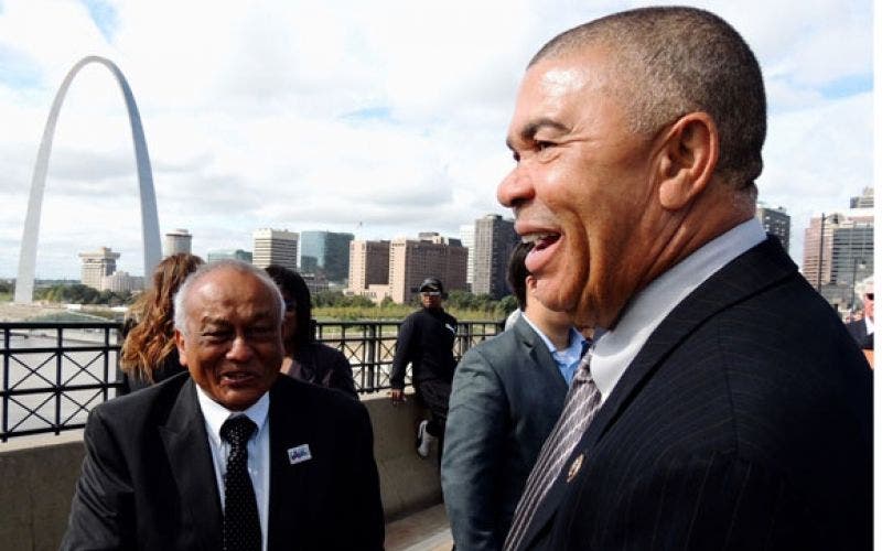 Democratic lawmakers have tried to put the painting back on display twice, but their GOP colleagues have continually taken it down. In the latest confrontation, Rep. Lacy Clay of Missouri, pictured above, and other Democrats urged the Capitol Police to press charges against Rep. Duncan Hunter, a Republican from California, for removing the artwork and then returning it to Clay's office. The artwork was created by one of Clay's constituents.