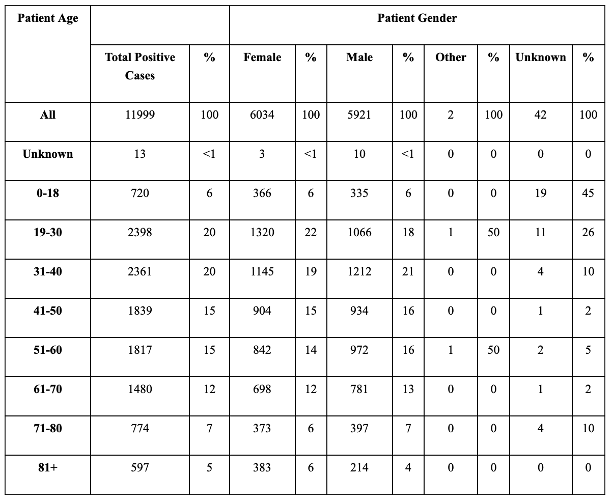 COVID-19 Cases By Age And Gender
