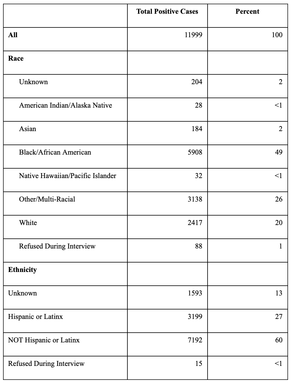 Total of Positive COVID-19 Cases By Race