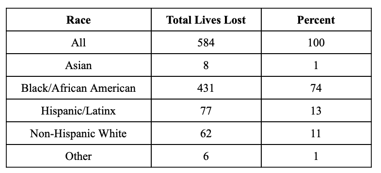 Total of Positive COVID-19 Deaths By Race