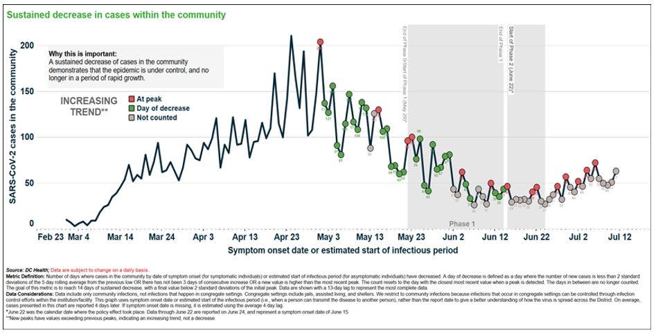 Community spread is one of the metrics the D.C. Health monitors to determine when it will be safe for the District to enter the next phase of its phased reopening. In order to move forward, the District must see a sustained decrease in community spread over 14 consecutive days.