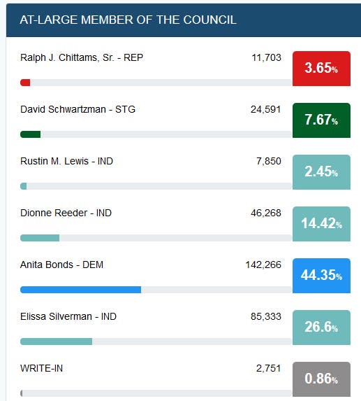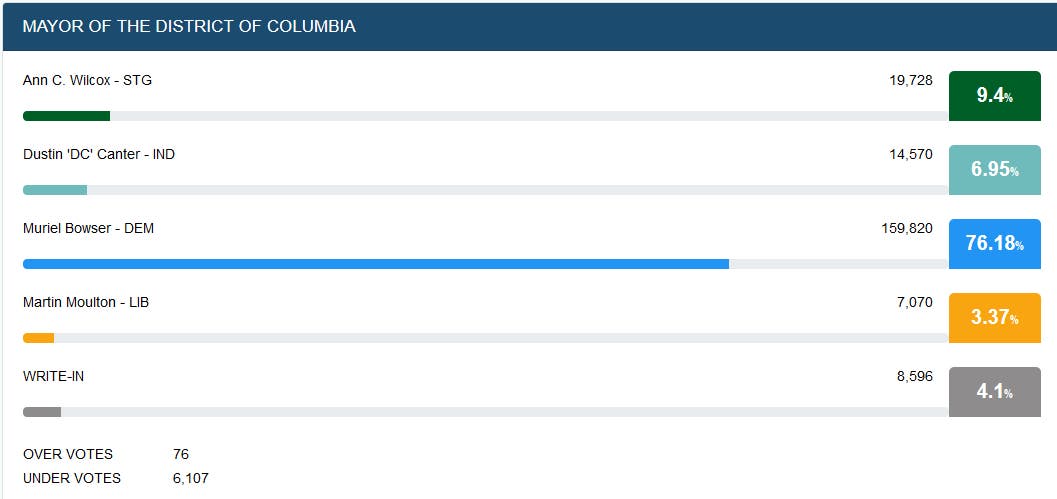 The rest of D.C. election results can be found on the D.C. Board of Elections website.