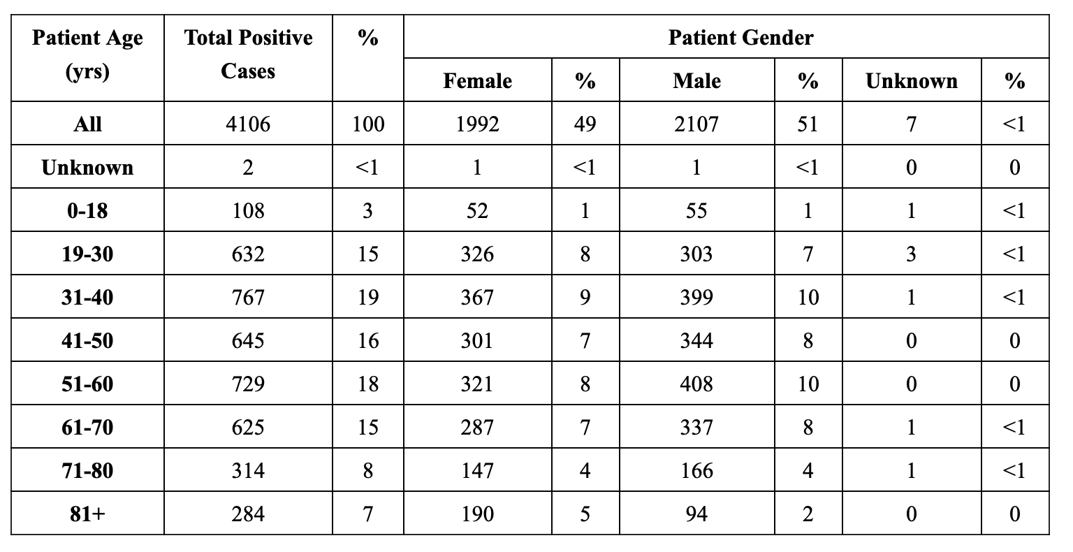 Aggregated Total of Positive COVID-19 Cases By Age And Gender: