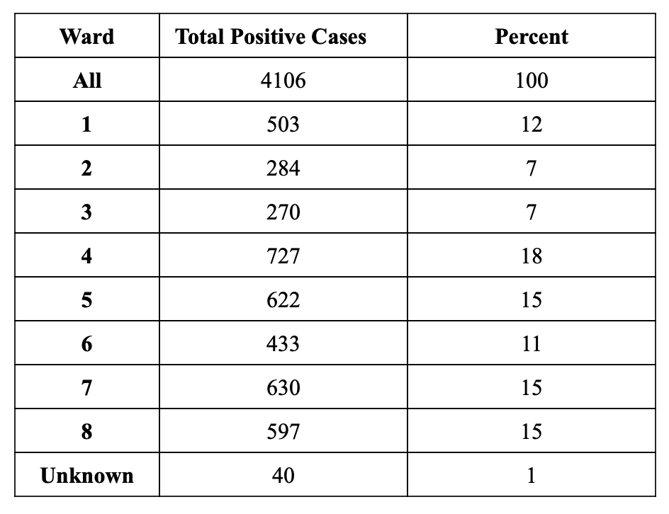 Aggregated Total of Positive COVID-19 Cases By Ward: