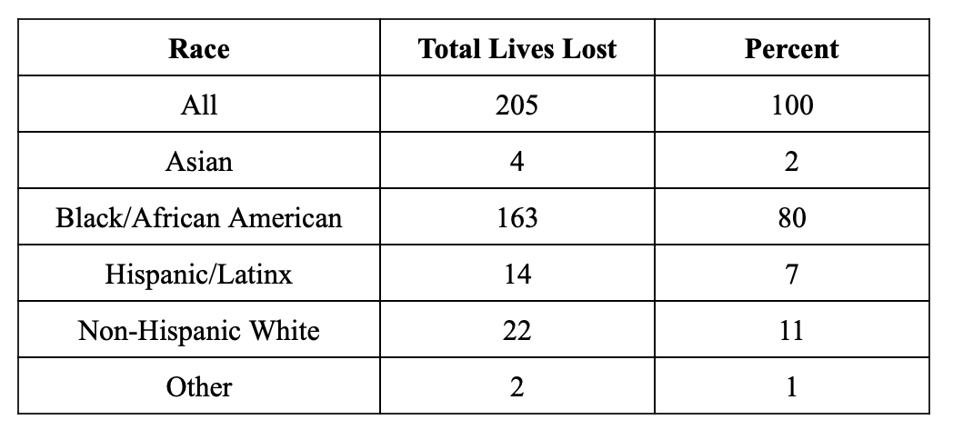 Aggregated Total of Positive COVID-19 Deaths By Race: