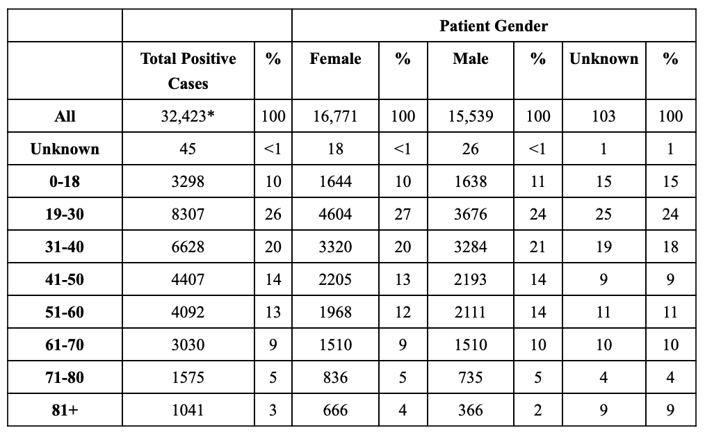 Total of Positive COVID-19 Cases By Age and Gender