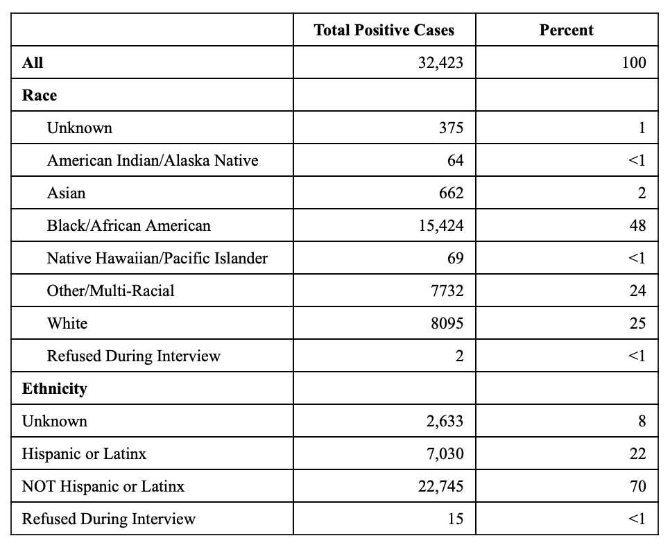 Total of Positive COVID-19 Cases By Race