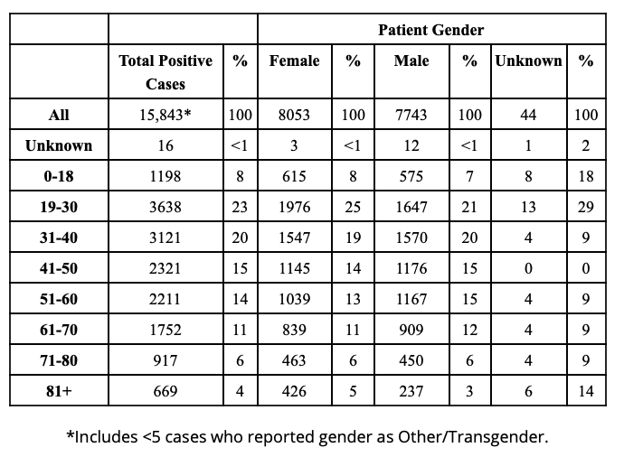 Total of Positive COVID-19 Cases By Age and Gender