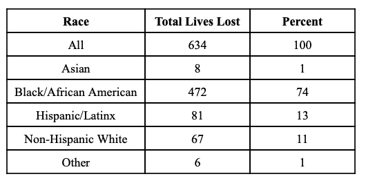 Total of Positive COVID-19 Deaths By Race